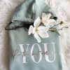 Den Hoodie gibt es in Woman- und Unisex-Größe. Die Passform ist normal geschnitten. Die Taschen befinden sich an den Seitennähten und die Kapuze ist aus Single-Jersey-Futter.